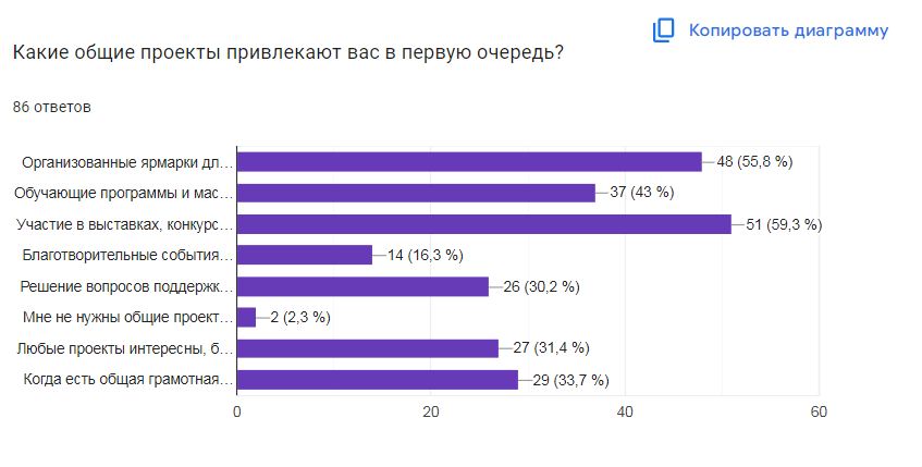 В начале года НОЧУ ДПО «Выгодный контракт» провели опрос ремесленников территорий, чтобы оценить наиболее актуальные вопросы, волнующие мастеров Области. В опросе приняли участие 86 человек.
